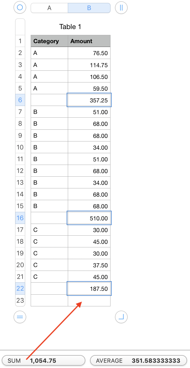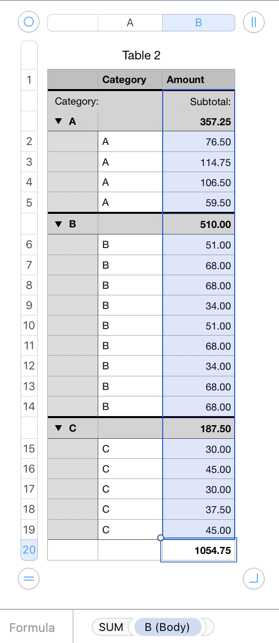 Sum Subtotals In Numbers Spreadsheet Apple Community